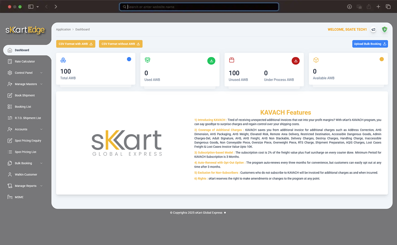 The Control Panel on Skart Edge is designed to give you complete visibility and flexibility over your shipments.